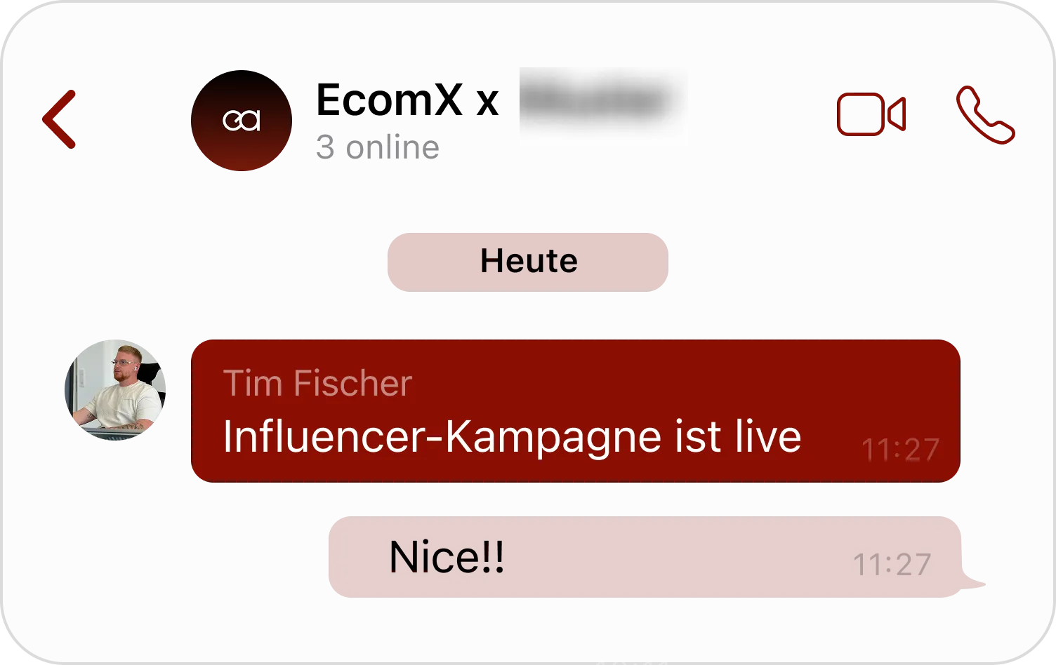 Über die exklusive 1:1-WhatsApp-Betreuung begleiten wir dich eng bei der Umsetzung und greifen aktiv ein, wenn es nötig ist: bei Influencer-Auswahl, Verhandlungen, Briefings, Ads oder Shop-Optimierungen. So entsteht ein stabiles, profitables Wachstumssystem, das dich Schritt für Schritt zur Marktführer-Position führt.
